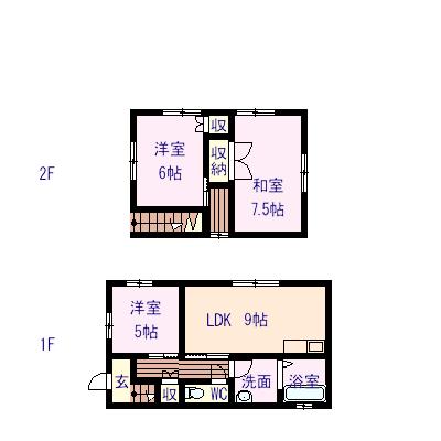 | 備 考 | 1階LDK9.6 洋5 2階洋6 和7.5 エアコン FFストーブ 物置 給湯追焚シャワー付 浴室乾燥 水洗イレ 洗面化粧台 家賃1ヶ月サービス 保証料家賃の80%